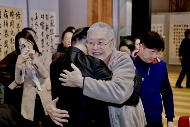 台湾抗日志士林正亨之子林义旻与台青相拥集采优配。